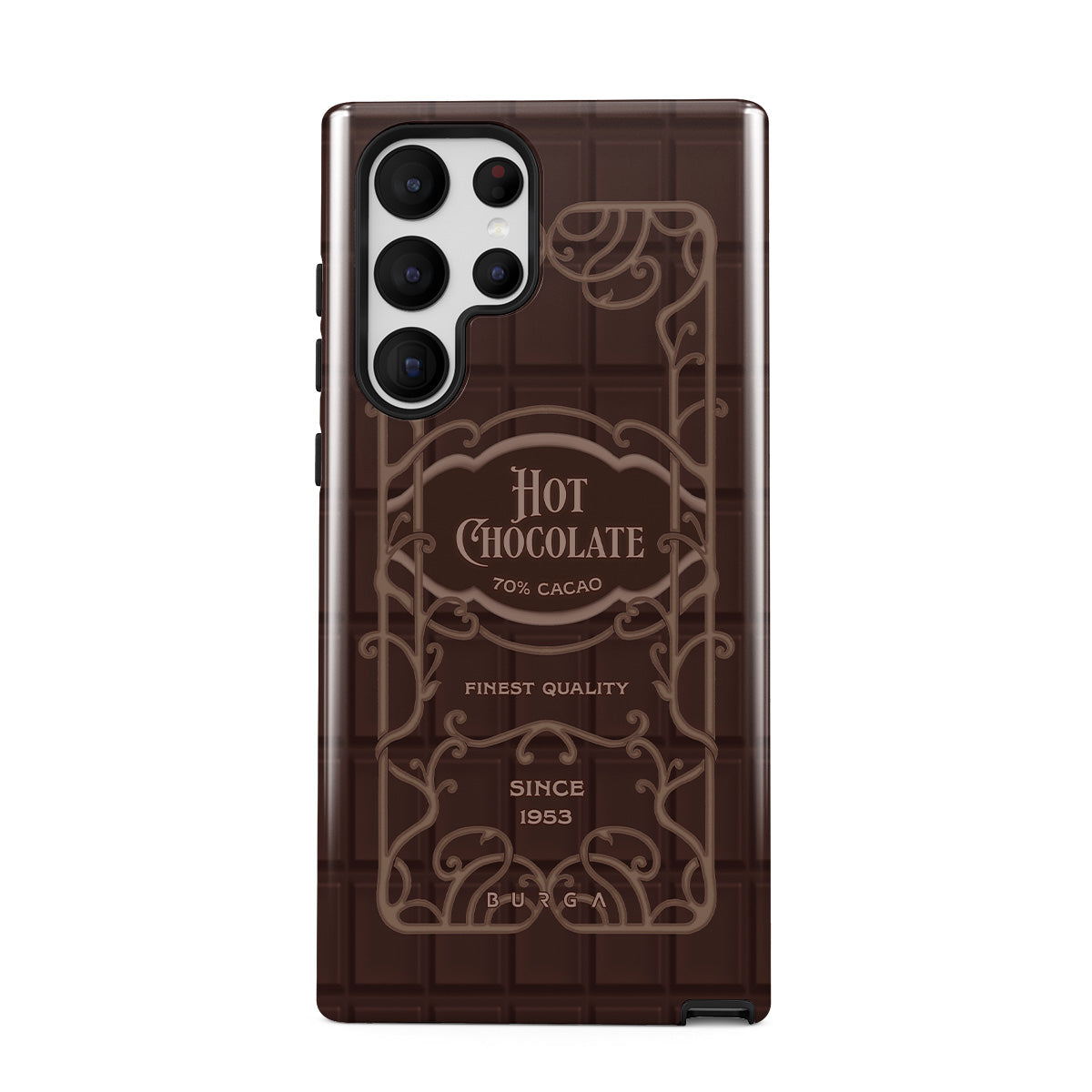 Kenmerken van dit design: hete chocoladelabel, bruine chocoladeontwerpen, retro verpakkingsstijl