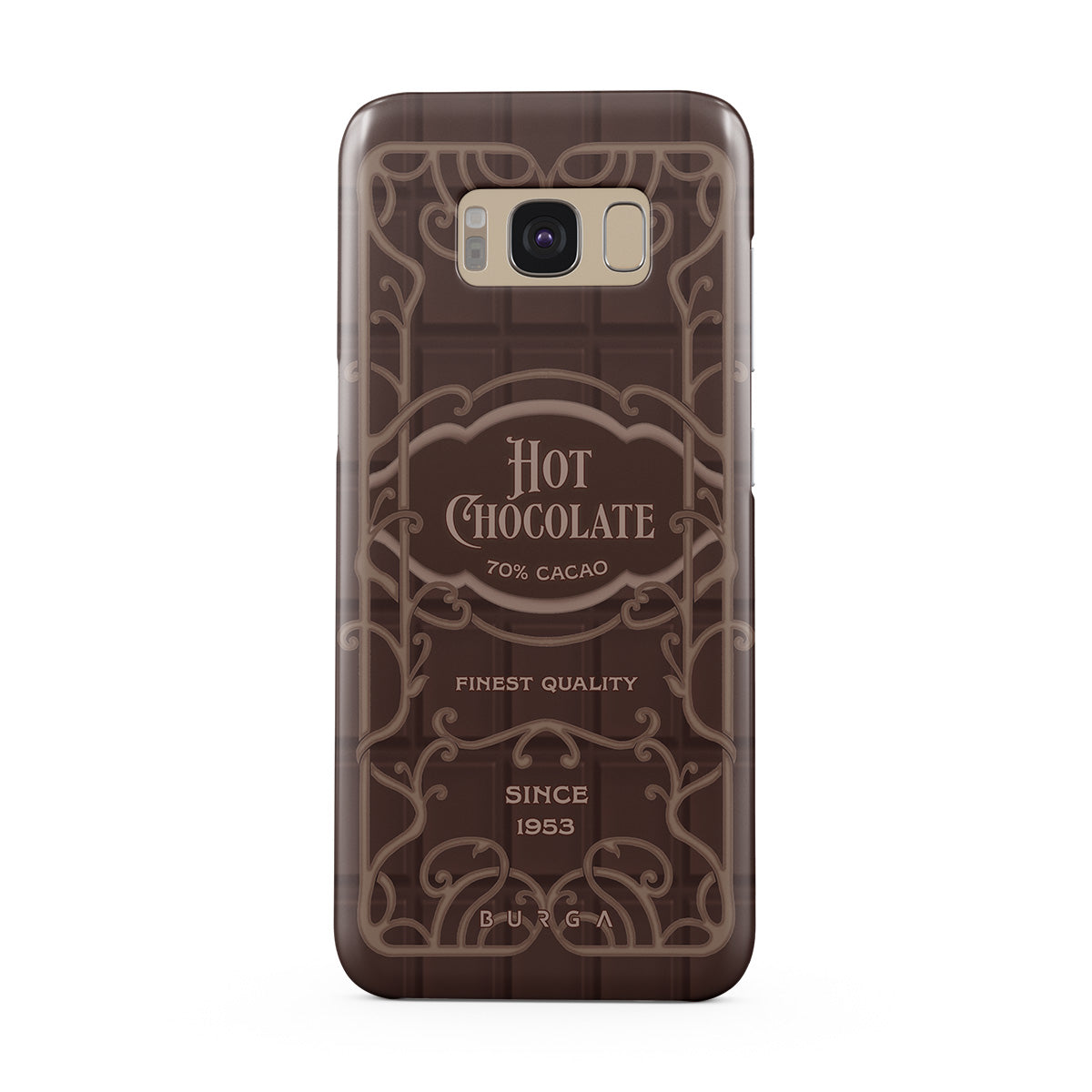 Kenmerken van dit design: hete chocoladelabel, bruine chocoladeontwerpen, retro verpakkingsstijl