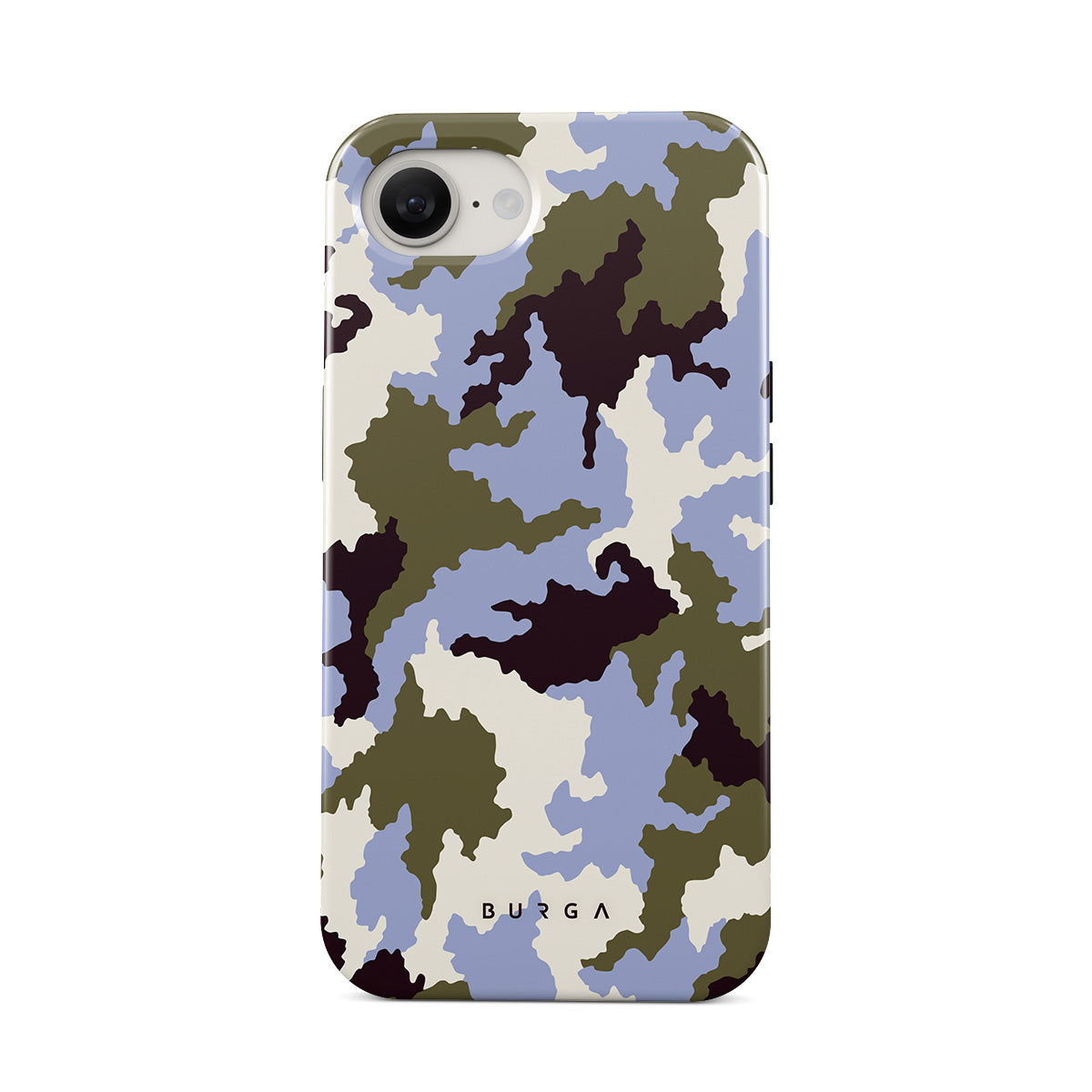 Kenmerken van dit design: camouflage, groen, blauw, militair patroon, abstracte vormen