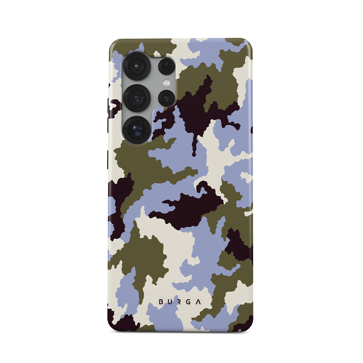 Kenmerken van dit design: camouflage, groen, blauw, militair patroon, abstracte vormen