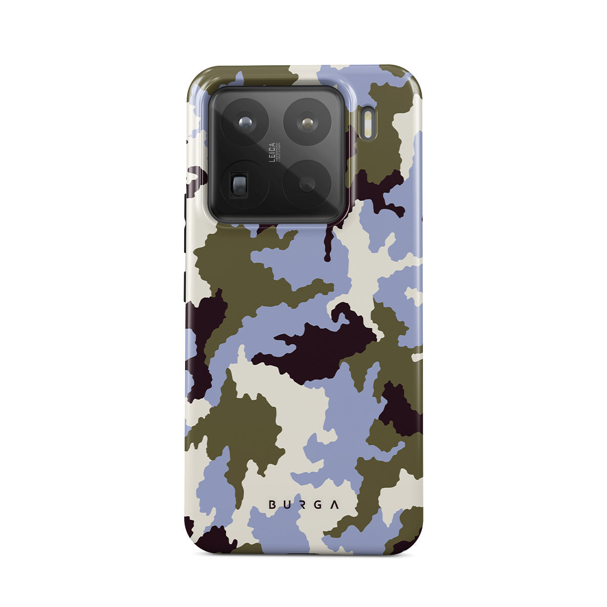 Kenmerken van dit design: camouflage, groen, blauw, militair patroon, abstracte vormen