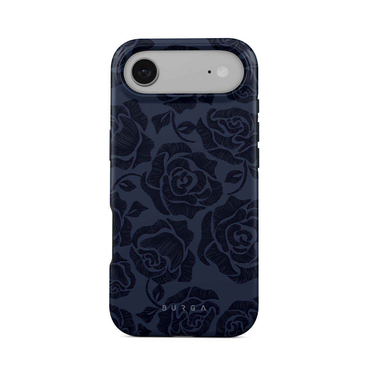 Dit ontwerp bevat: anemonen, bloemenprint, donkerblauwe rozen, schaduweffecten.