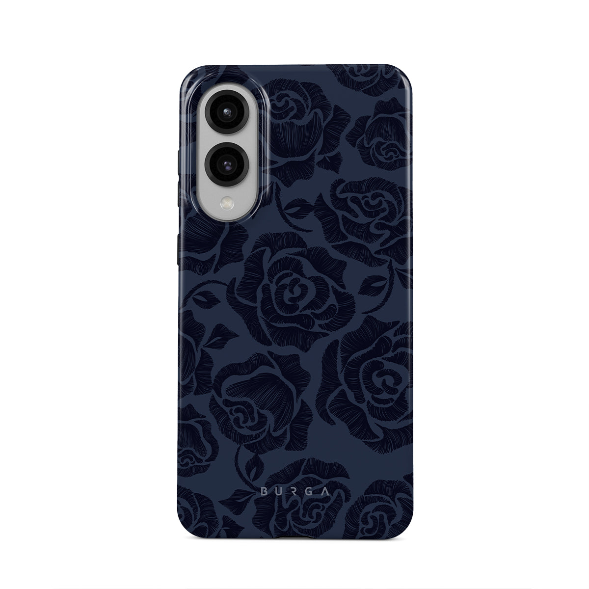 Dit ontwerp bevat: anemonen, bloemenprint, donkerblauwe rozen, schaduweffecten.
