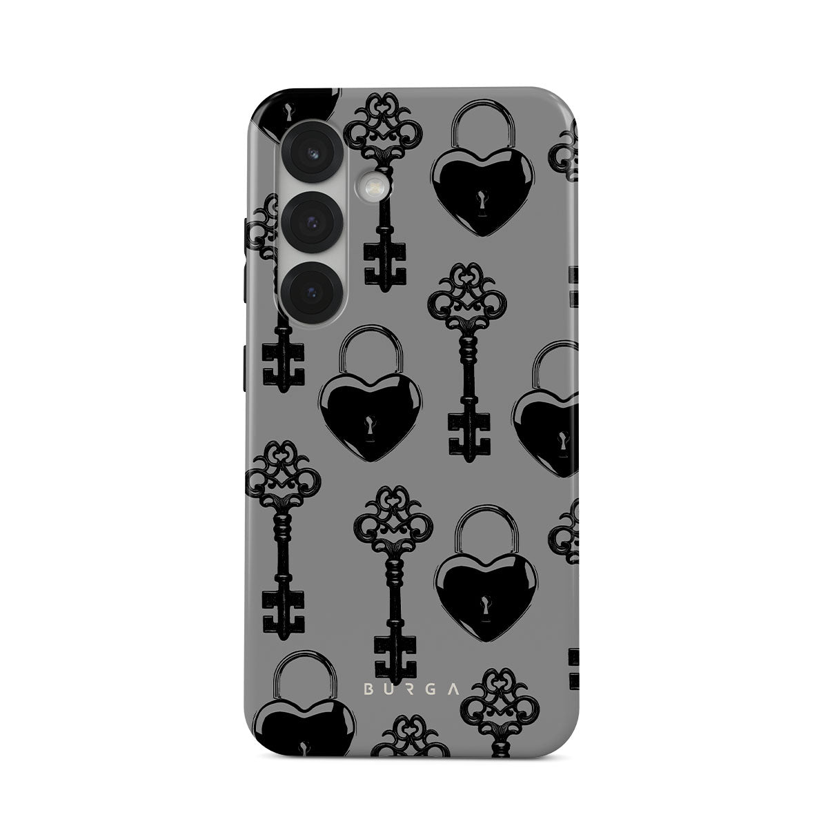 Dit ontwerp bevat: sierlijke sloten, vintage sleutels, zwarte details.
