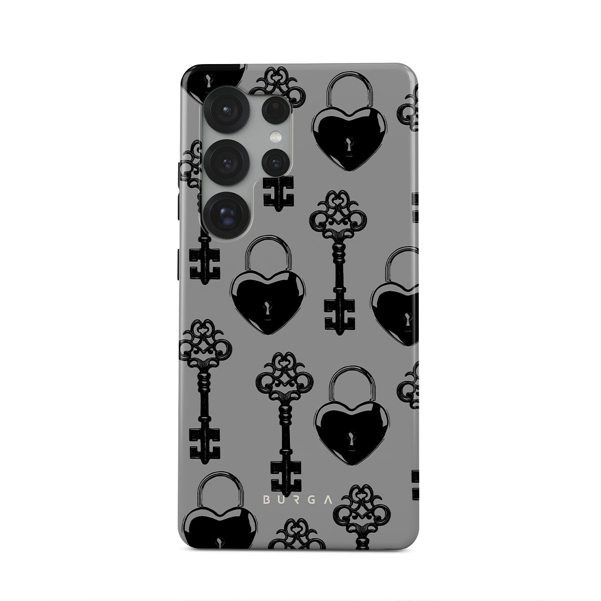 Dit ontwerp bevat: sierlijke sloten, vintage sleutels, zwarte details.