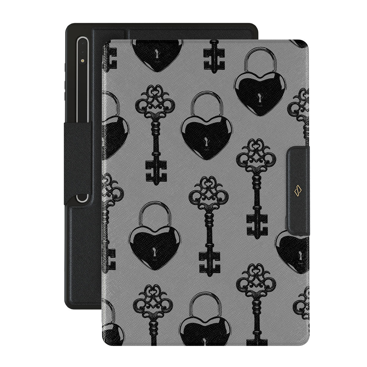 Dit ontwerp bevat: sierlijke sloten, vintage sleutels, zwarte details.