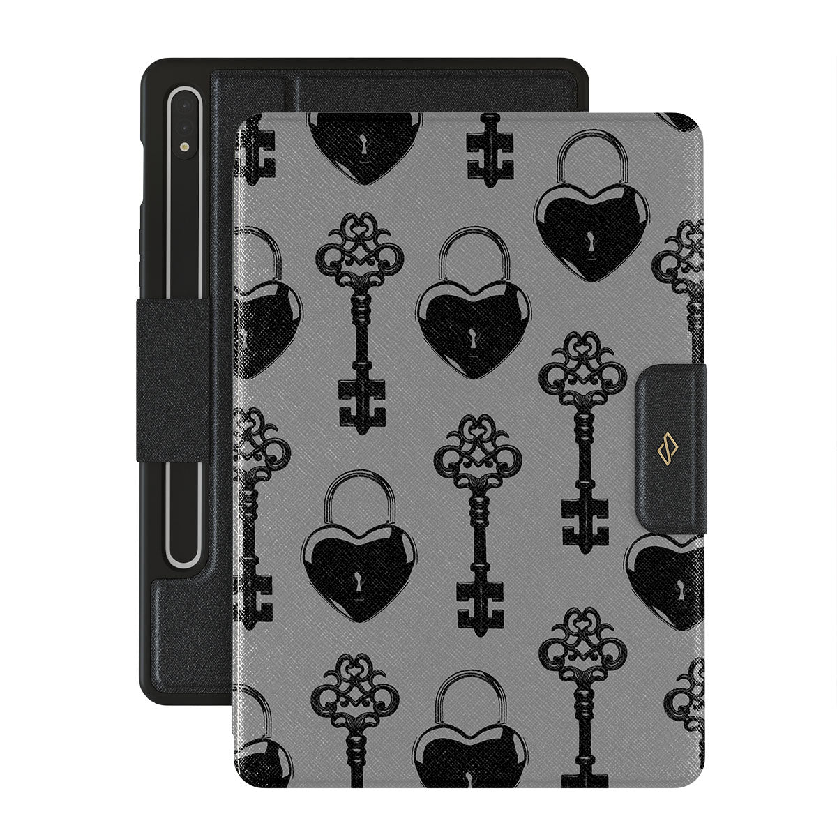 Dit ontwerp bevat: sierlijke sloten, vintage sleutels, zwarte details.