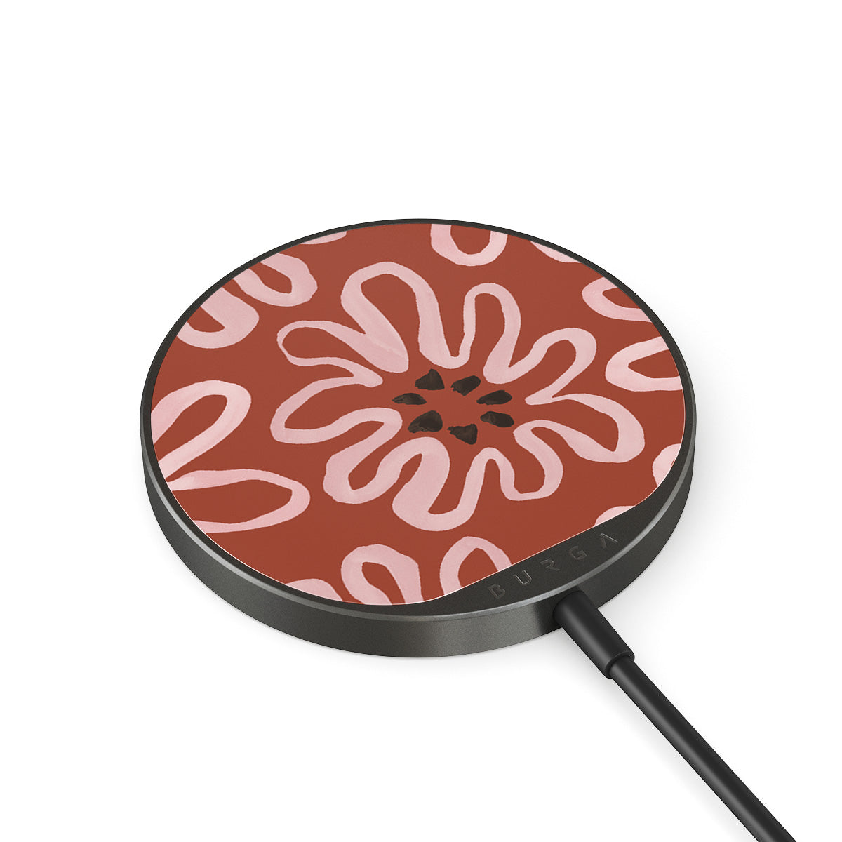 Met de geïntegreerde kabel van 1,5 m kun je eenvoudig opladen, waar je ook bent: op kantoor, op de bank of in de lounge op het vliegveld. Bovendien kies je dankzij de glazen achterkant van BURGA uit 500+ prints, dus je oplader ziet er altijd even goed uit als je hoesje.