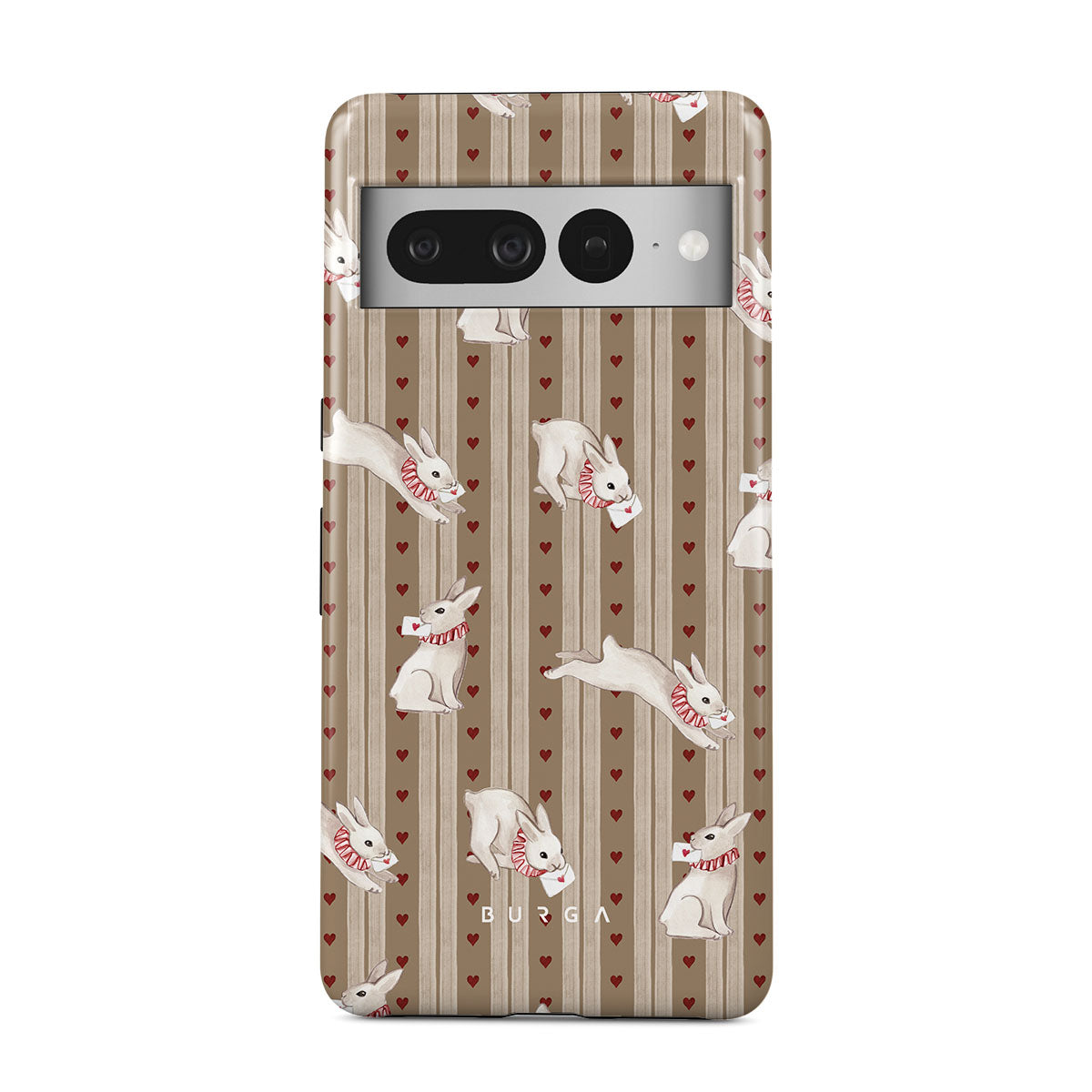 Kenmerken van dit design: witte konijnen, harten, liefde, brieven, vintage strepen