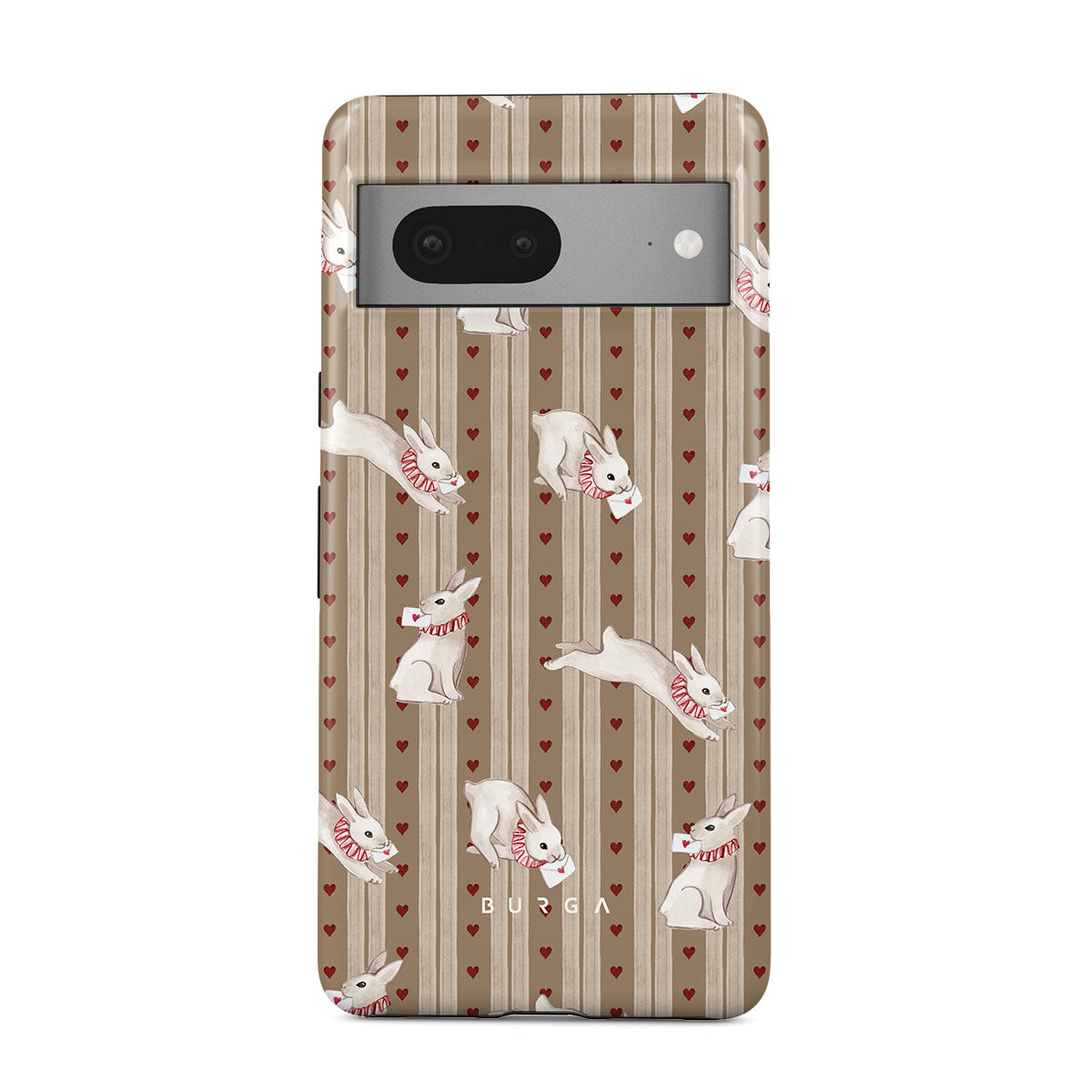 Kenmerken van dit design: witte konijnen, harten, liefde, brieven, vintage strepen