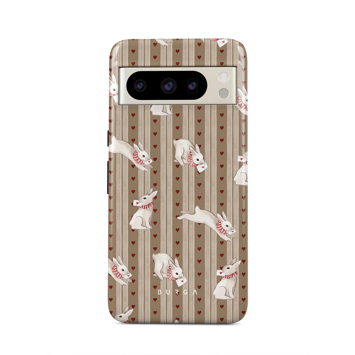 Kenmerken van dit design: witte konijnen, harten, liefde, brieven, vintage strepen