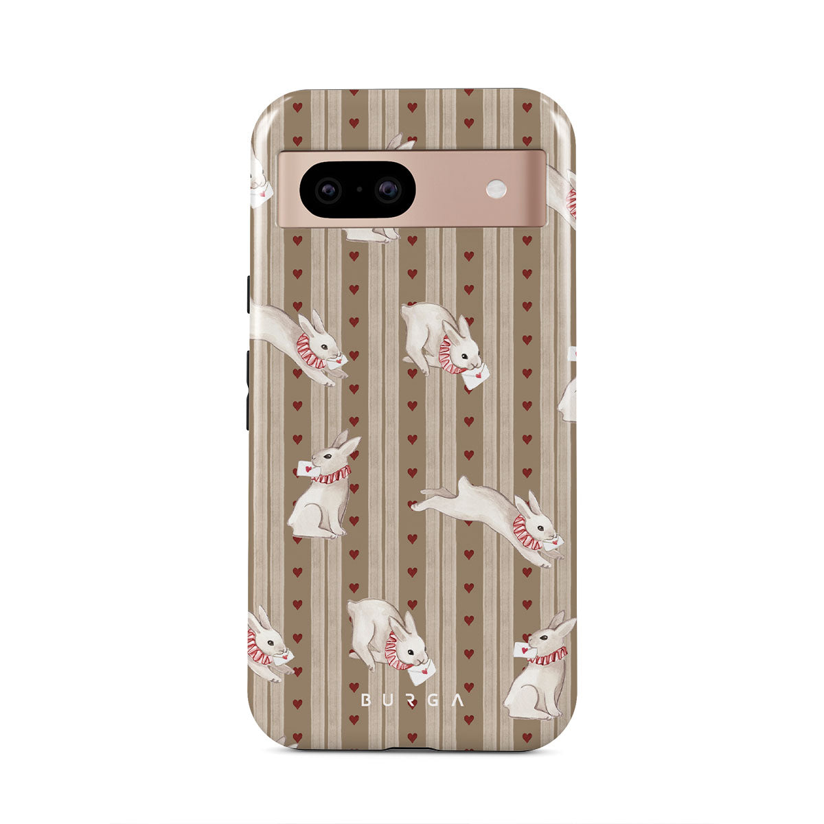 Kenmerken van dit design: witte konijnen, harten, liefde, brieven, vintage strepen