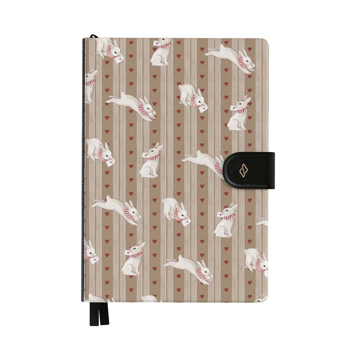 Kenmerken van dit design: witte konijnen, harten, liefde, brieven, vintage strepen