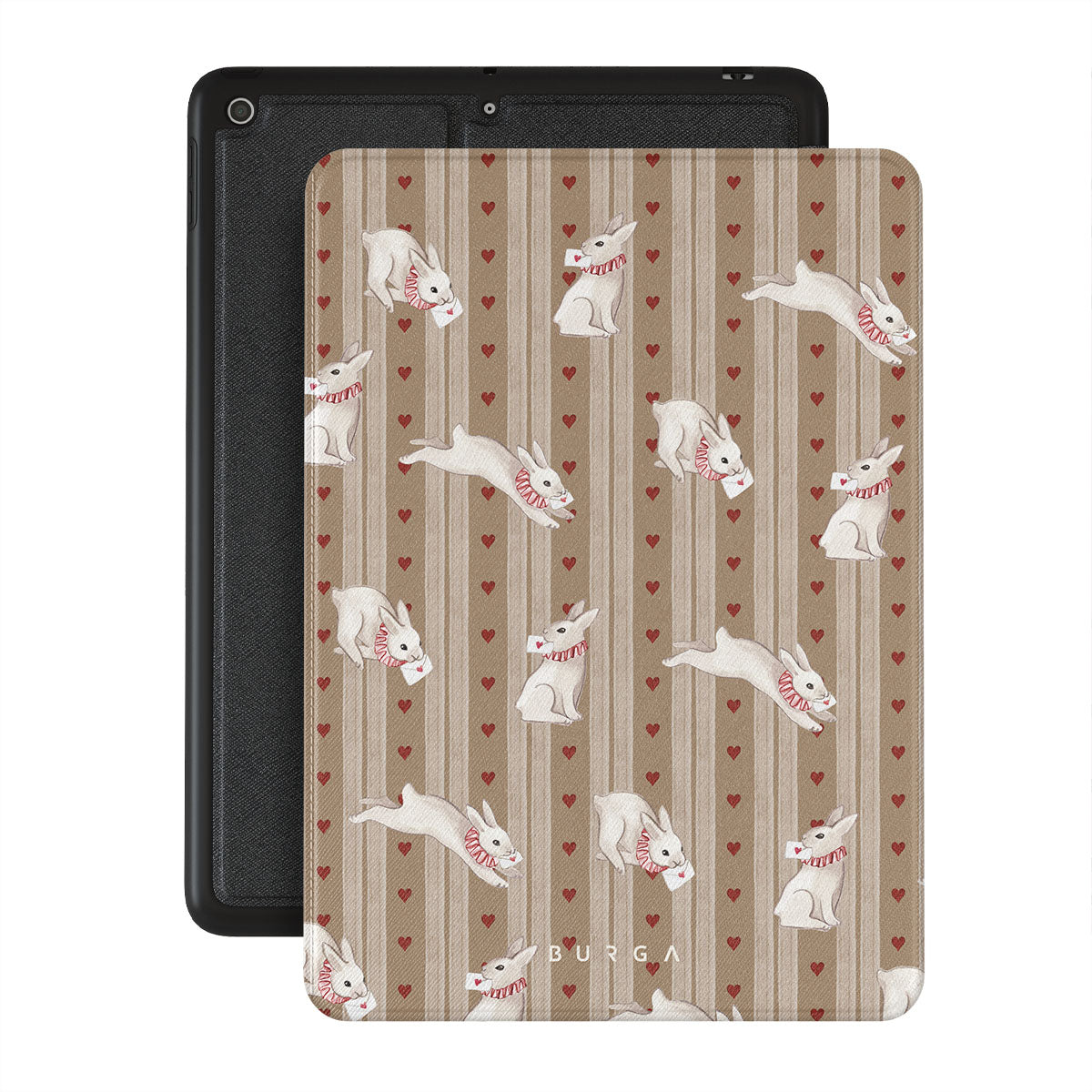 Kenmerken van dit design: witte konijnen, harten, liefde, brieven, vintage strepen