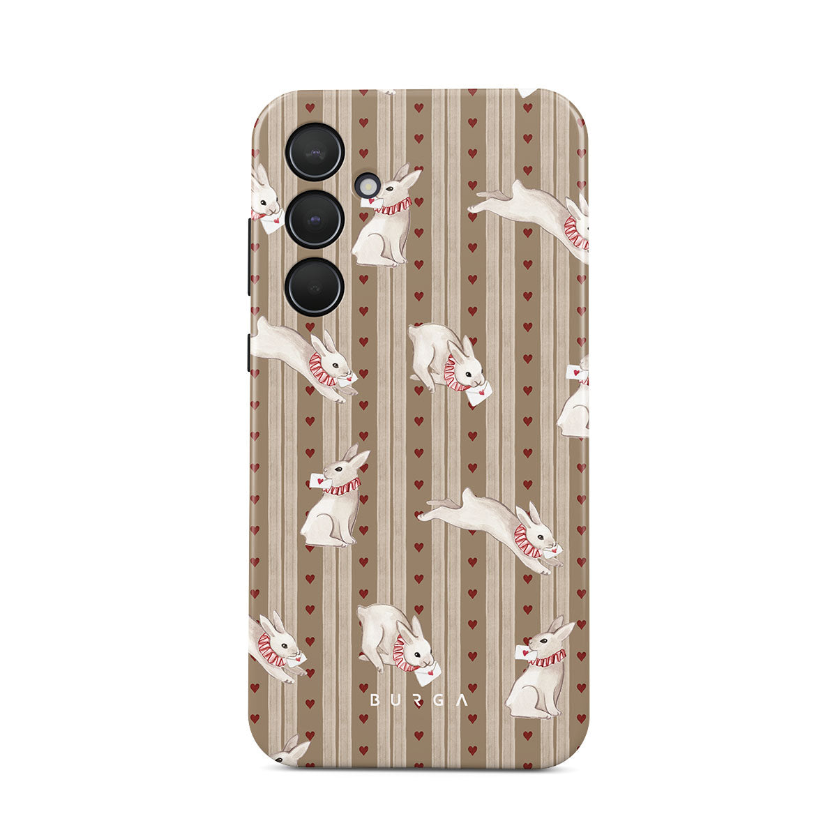 Kenmerken van dit design: witte konijnen, harten, liefde, brieven, vintage strepen