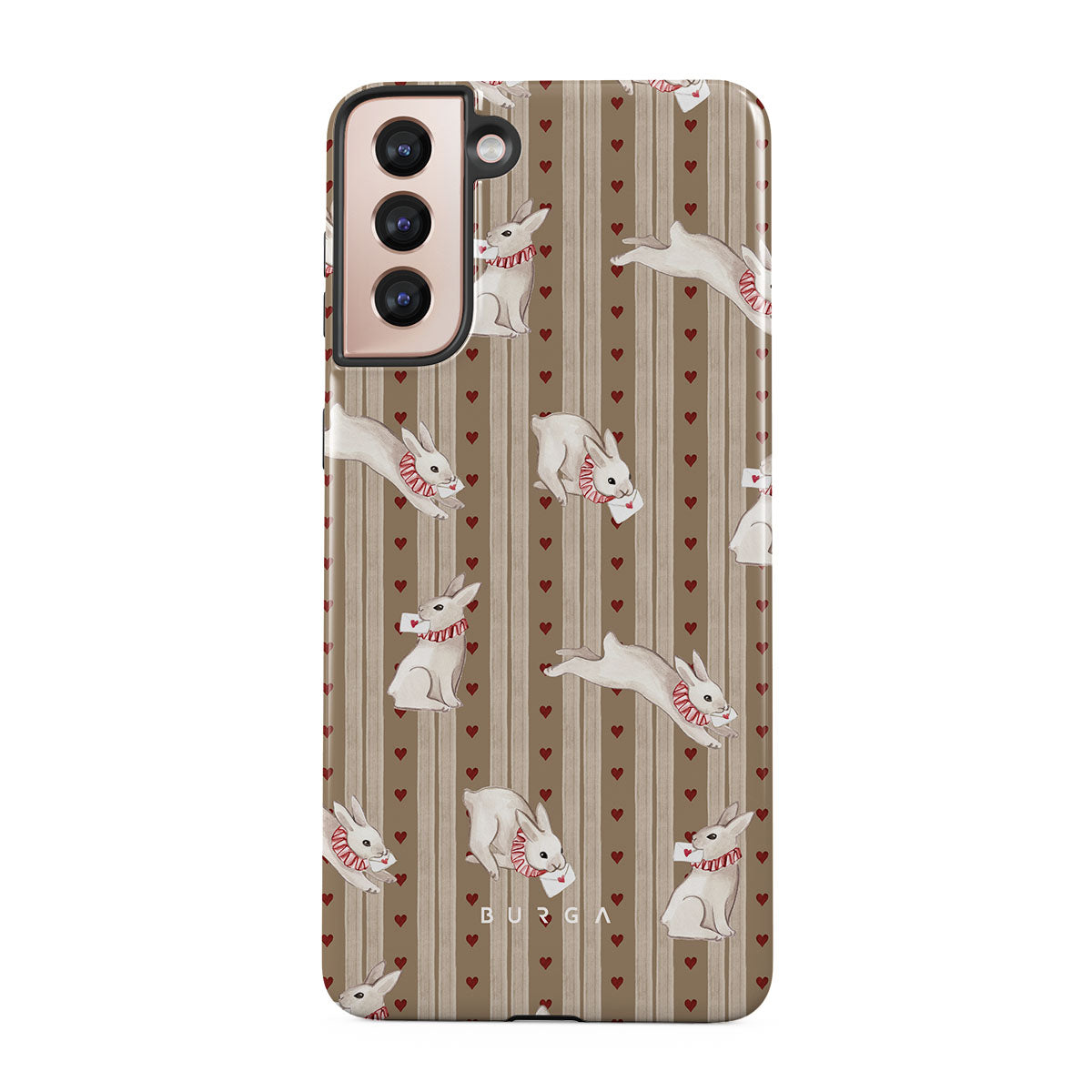 Kenmerken van dit design: witte konijnen, harten, liefde, brieven, vintage strepen
