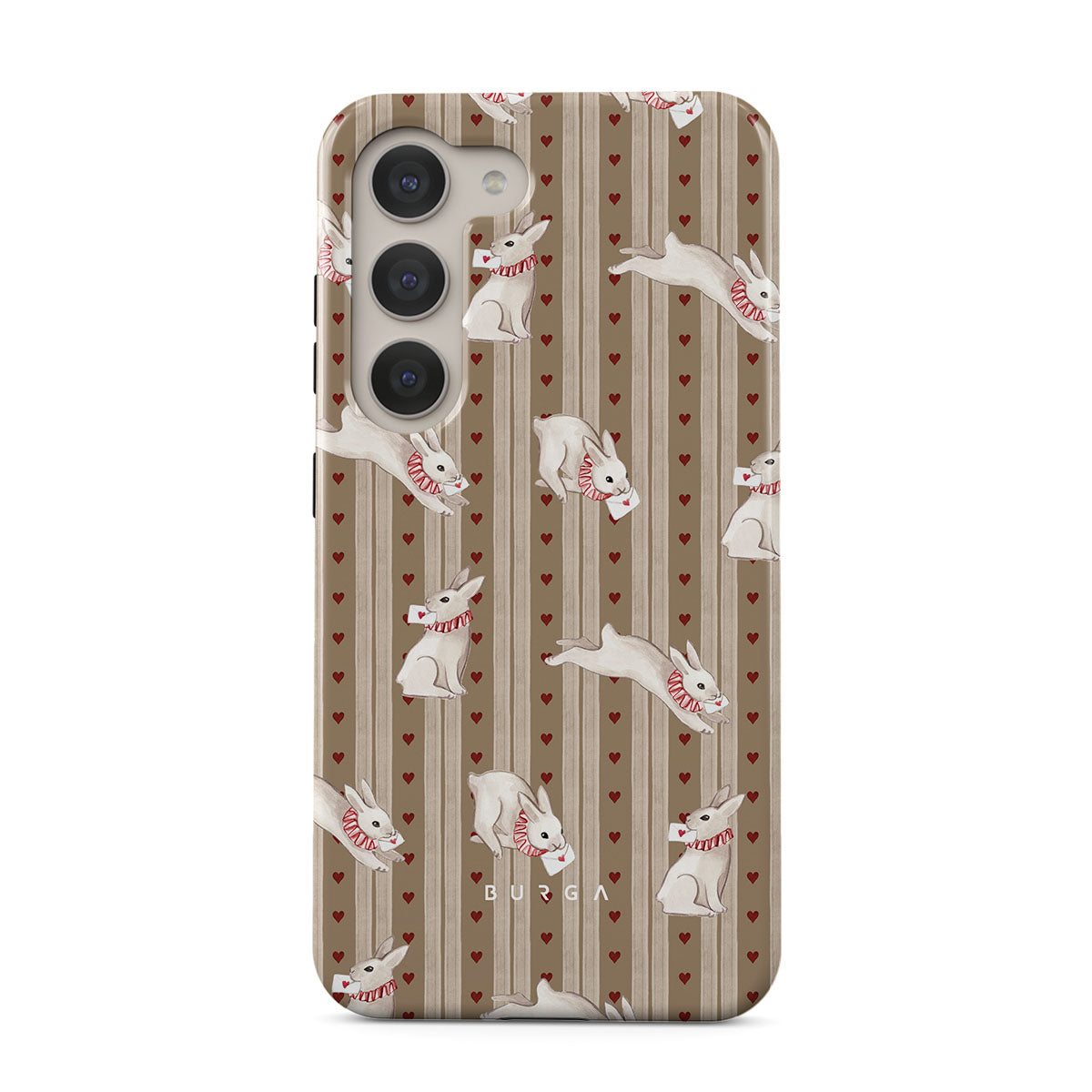 Kenmerken van dit design: witte konijnen, harten, liefde, brieven, vintage strepen