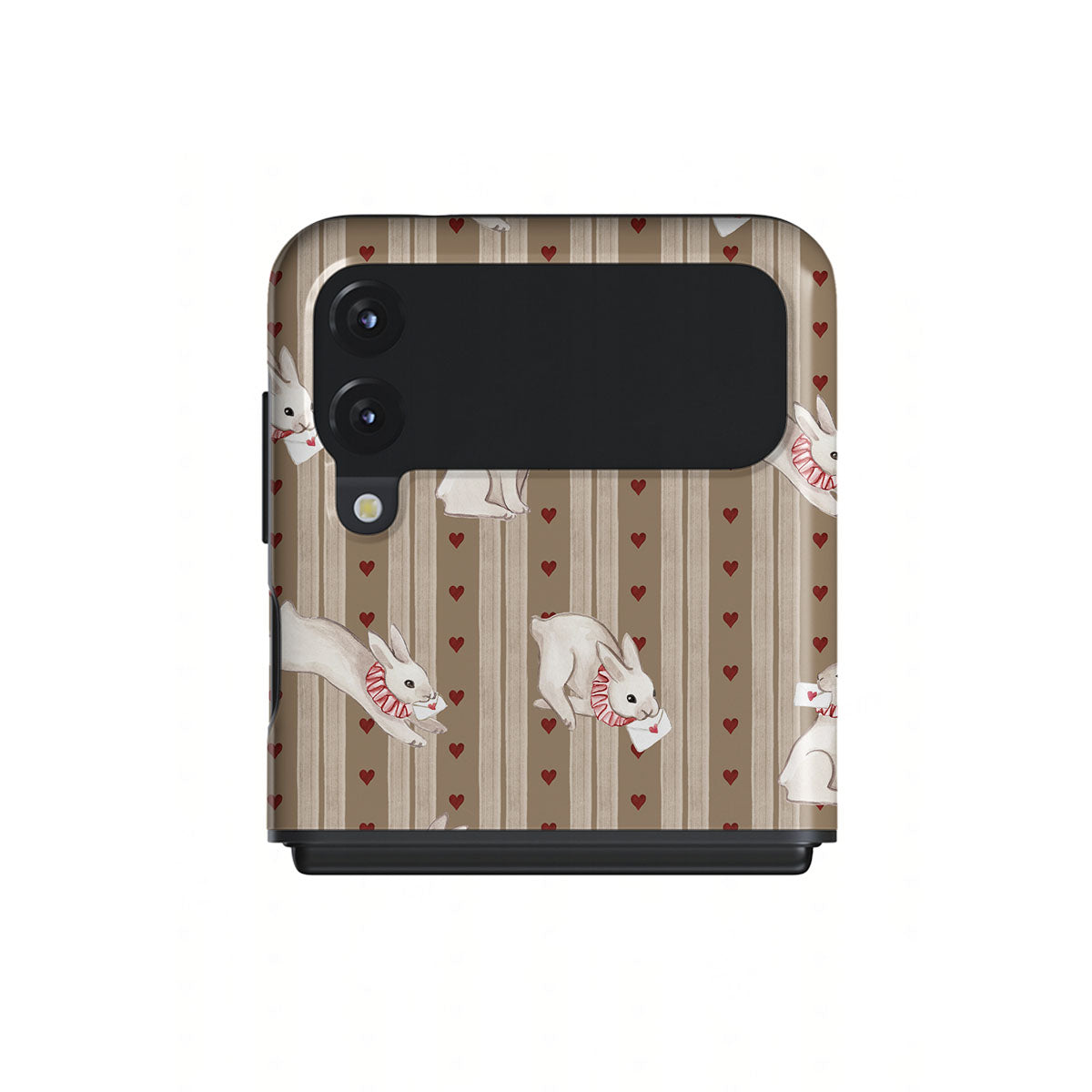 Kenmerken van dit design: witte konijnen, harten, liefde, brieven, vintage strepen