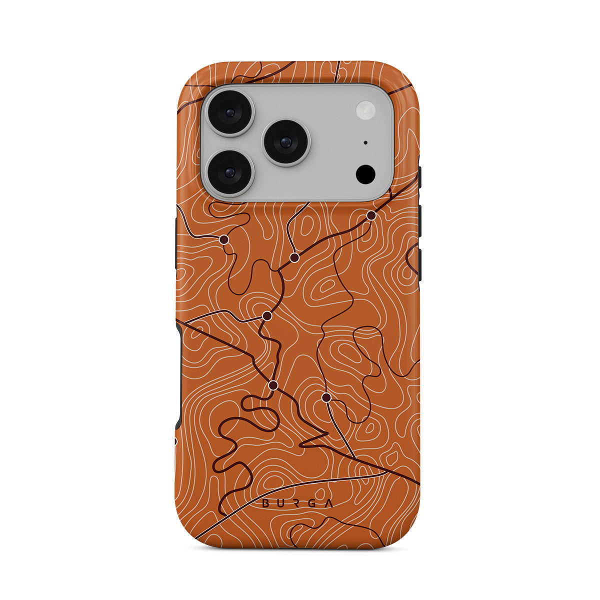 Kenmerken van dit design: oranje, kaartlijnen, abstract patroon