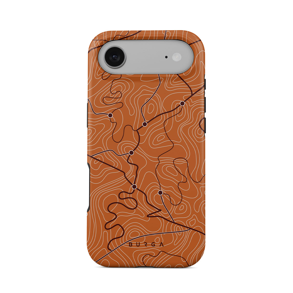 Kenmerken van dit design: oranje, kaartlijnen, abstract patroon