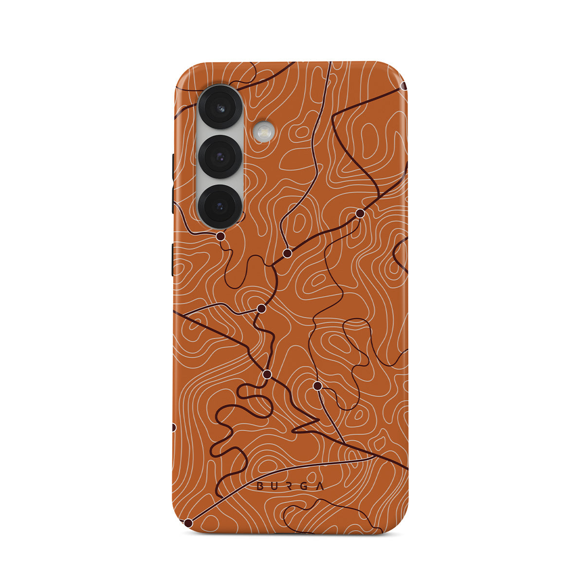 Kenmerken van dit design: oranje, kaartlijnen, abstract patroon
