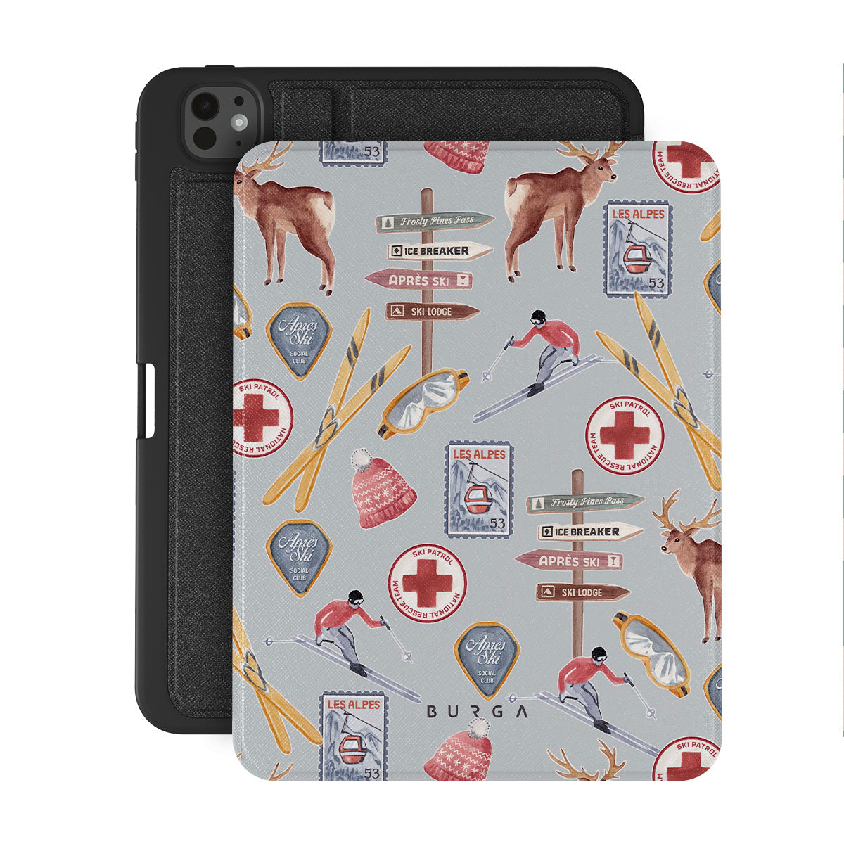 Kenmerken van dit design: vintage skireclame, retro skiresort, rendierillustratie, skiliftontwerp, Alpenpatroon, wintersporten, klassieke ski-lodgestijl, bergresortgrafieken