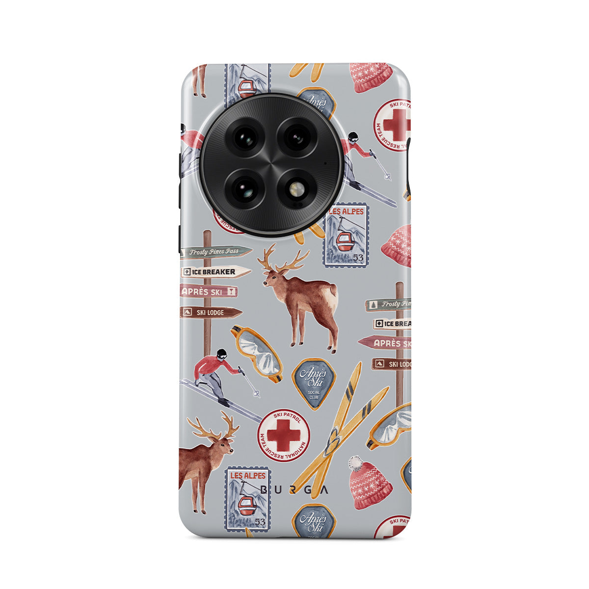 Kenmerken van dit design: vintage skireclame, retro skiresort, rendierillustratie, skiliftontwerp, Alpenpatroon, wintersporten, klassieke ski-lodgestijl, bergresortgrafieken