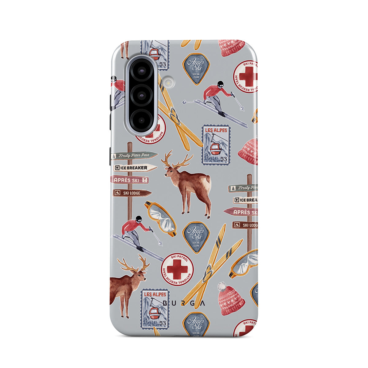 Kenmerken van dit design: vintage skireclame, retro skiresort, rendierillustratie, skiliftontwerp, Alpenpatroon, wintersporten, klassieke ski-lodgestijl, bergresortgrafieken