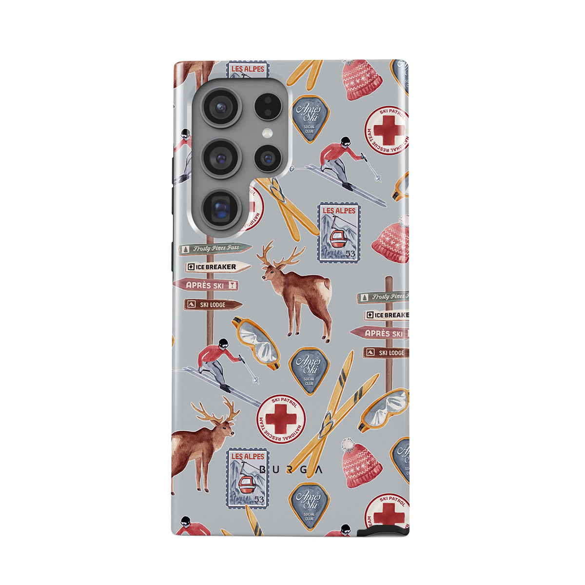 Kenmerken van dit design: vintage skireclame, retro skiresort, rendierillustratie, skiliftontwerp, Alpenpatroon, wintersporten, klassieke ski-lodgestijl, bergresortgrafieken