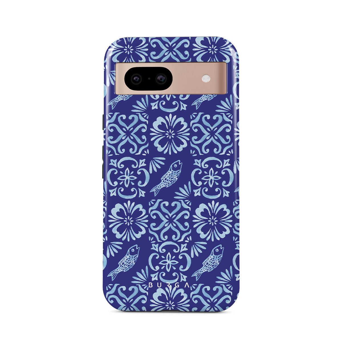 Kenmerken van dit design: Portugese tegelpatronen, diepe blauwtinten, bloemenmotieven, bloemen, vissen
