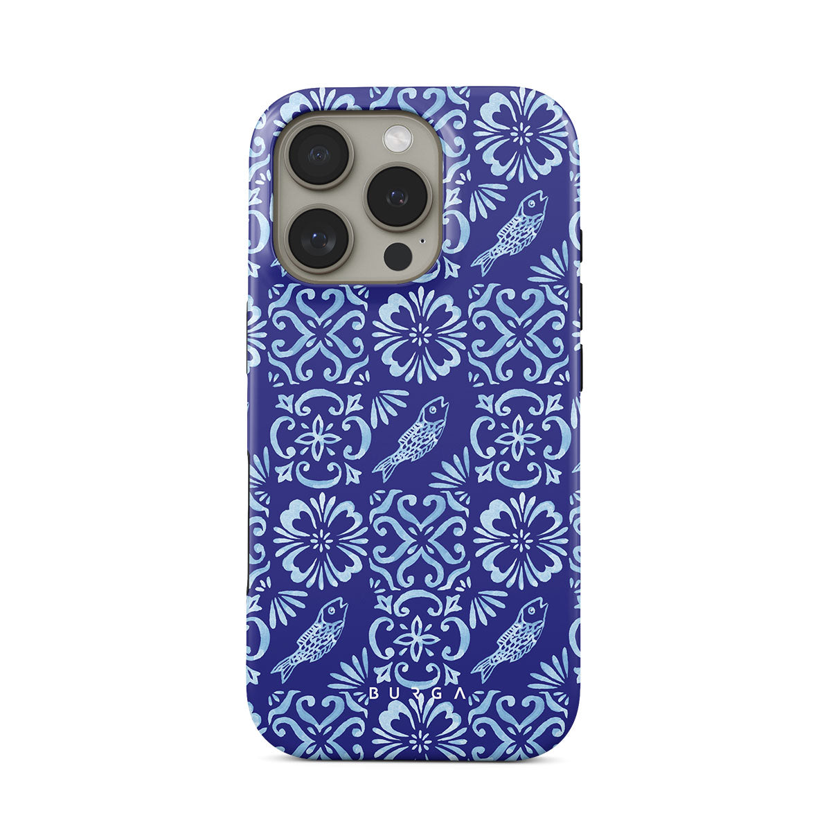 Kenmerken van dit design: Portugese tegelpatronen, diepe blauwtinten, bloemenmotieven, bloemen, vissen