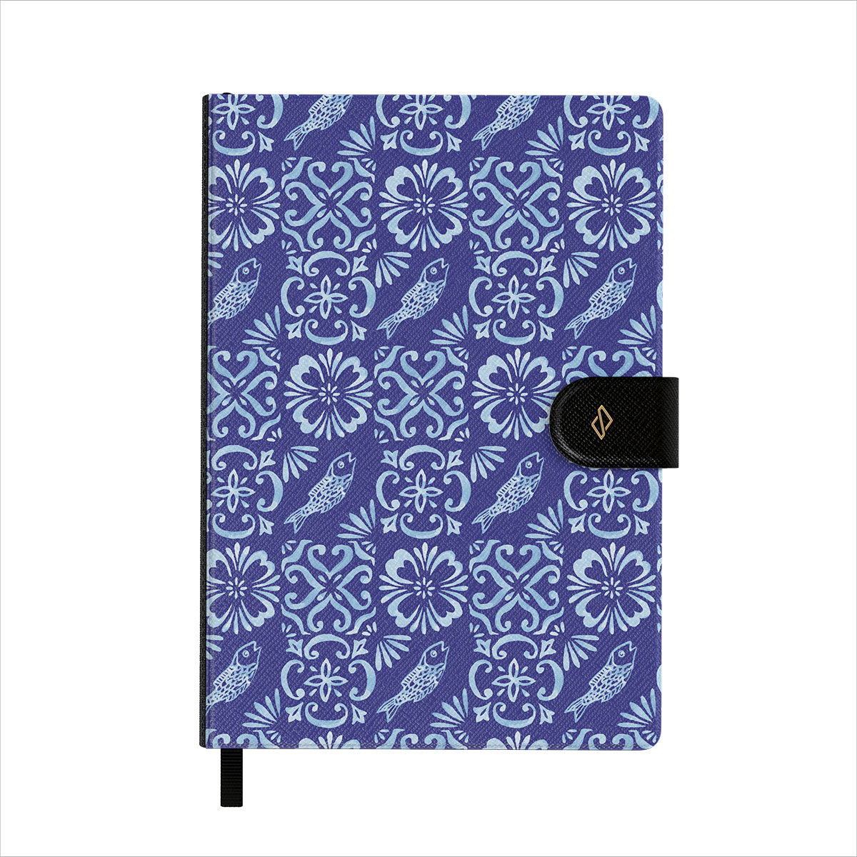 Kenmerken van dit design: Portugese tegelpatronen, diepe blauwtinten, bloemenmotieven, bloemen, vissen