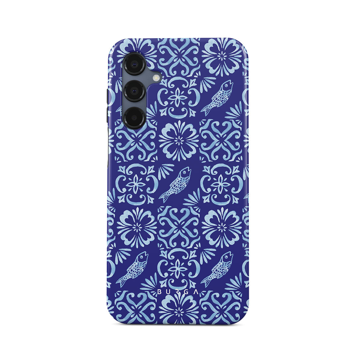 Kenmerken van dit design: Portugese tegelpatronen, diepe blauwtinten, bloemenmotieven, bloemen, vissen