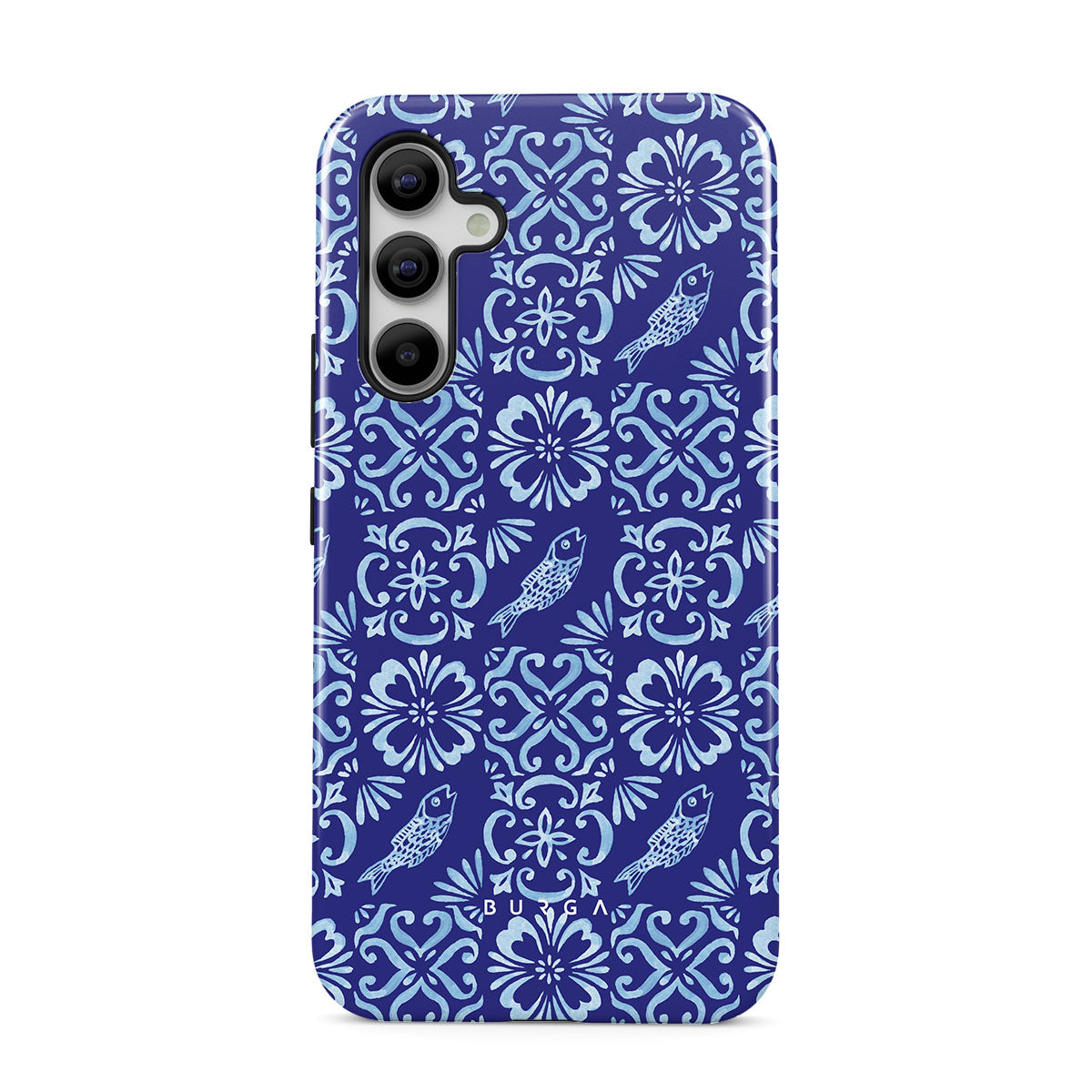 Kenmerken van dit design: Portugese tegelpatronen, diepe blauwtinten, bloemenmotieven, bloemen, vissen