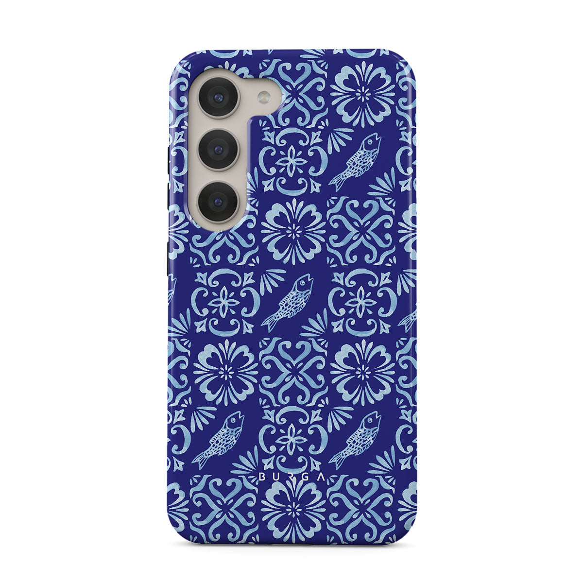 Kenmerken van dit design: Portugese tegelpatronen, diepe blauwtinten, bloemenmotieven, bloemen, vissen