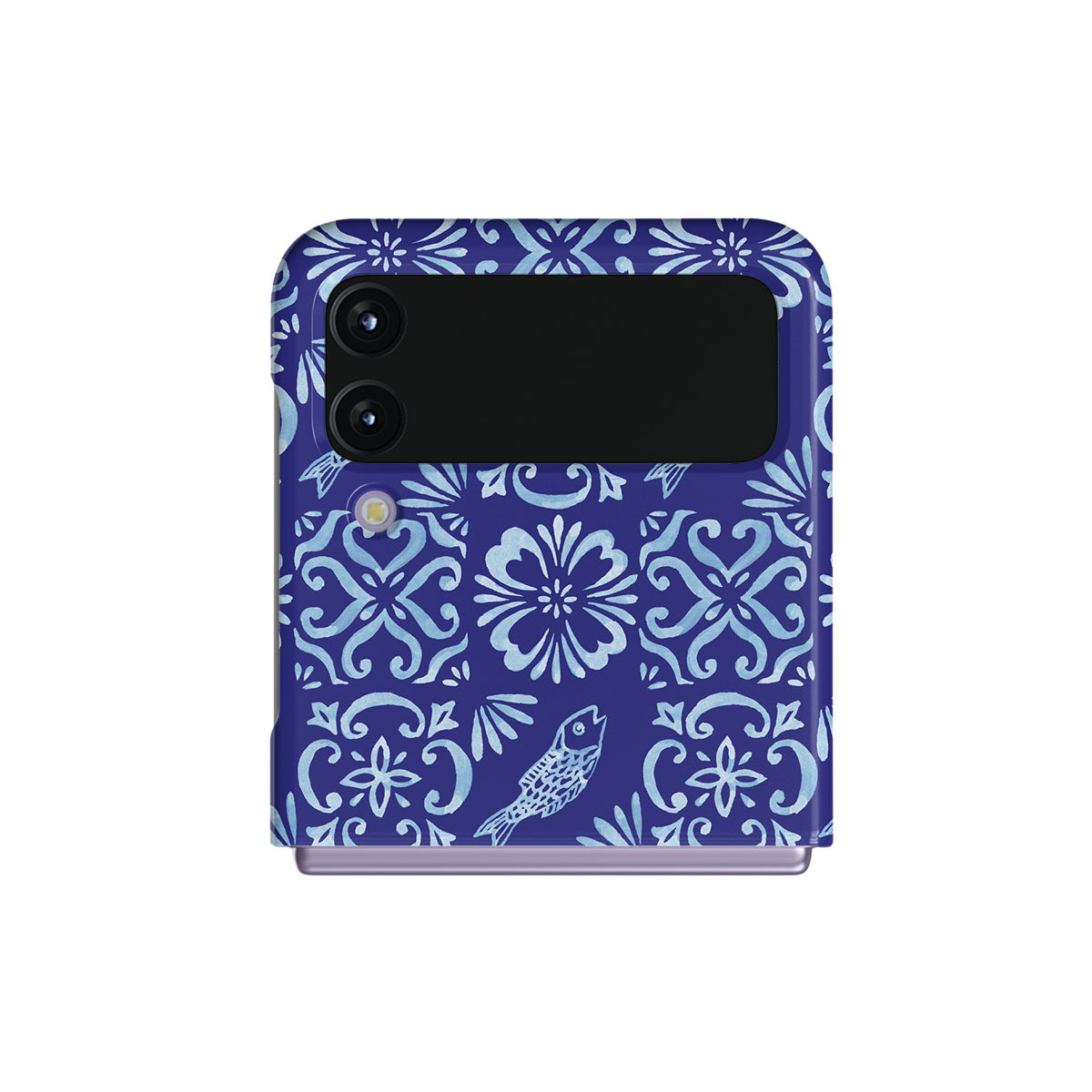 Kenmerken van dit design: Portugese tegelpatronen, diepe blauwtinten, bloemenmotieven, bloemen, vissen