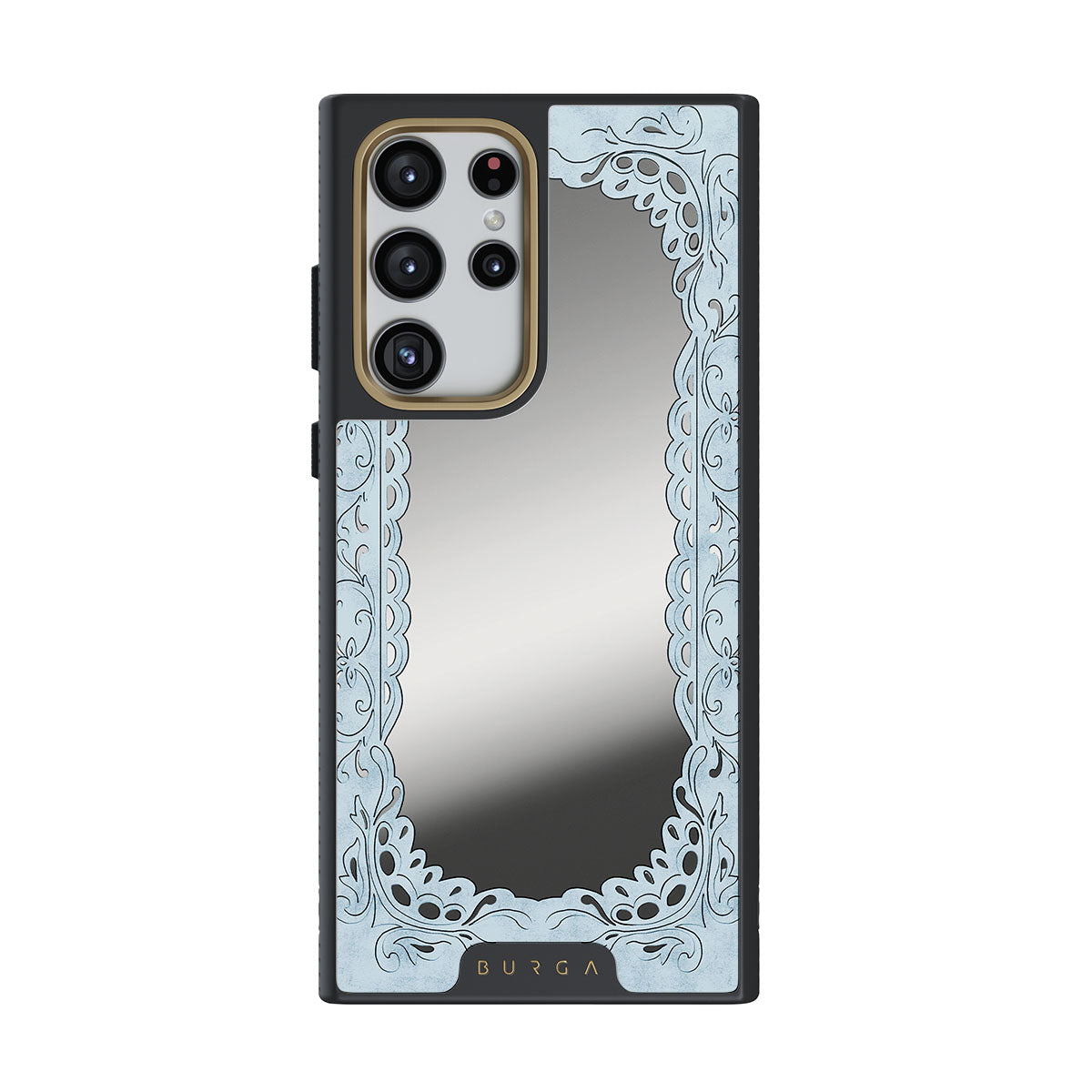 Kenmerken van dit design: blauwe lijst, vintage lijst, spiegeleffect