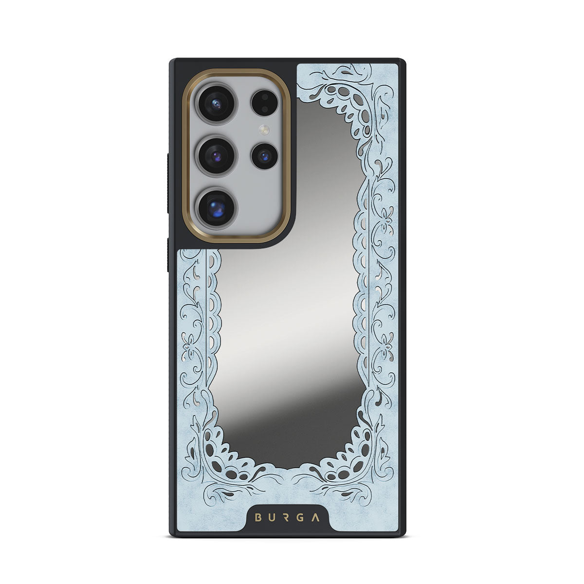 Kenmerken van dit design: blauwe lijst, vintage lijst, spiegeleffect