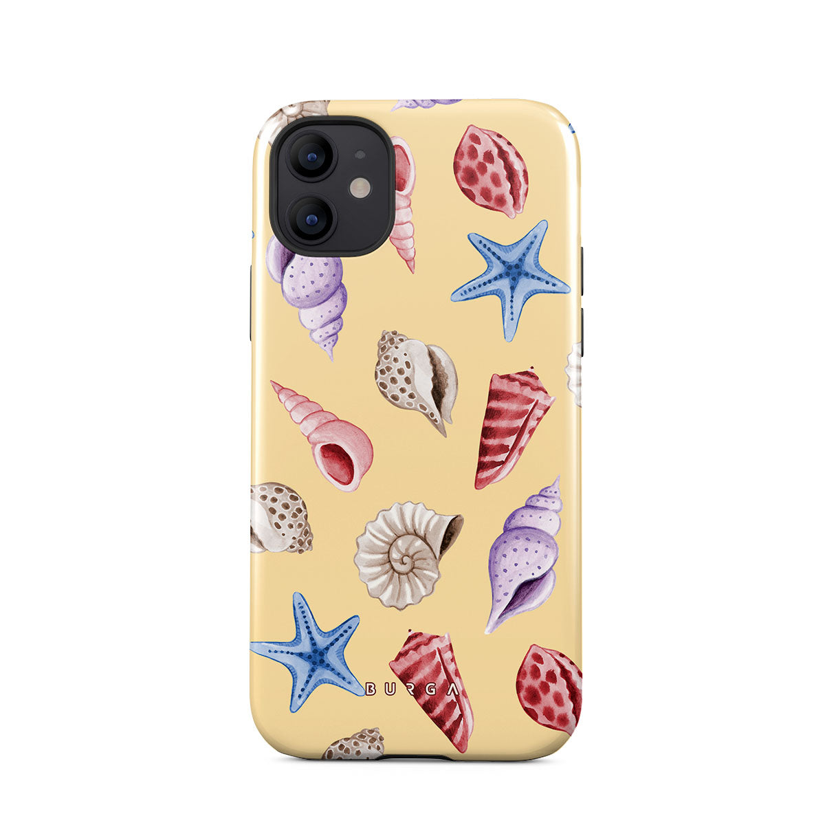 Kenmerken van dit design: schelpen, zeesterren, pastelgele achtergrond, oceaanthema.