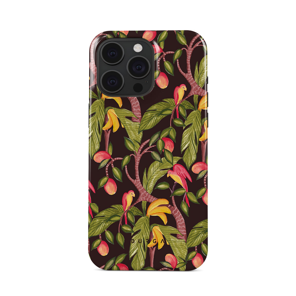 Kenmerken van dit design: mango's, donkere groene bladeren, jungle geïnspireerd patroon