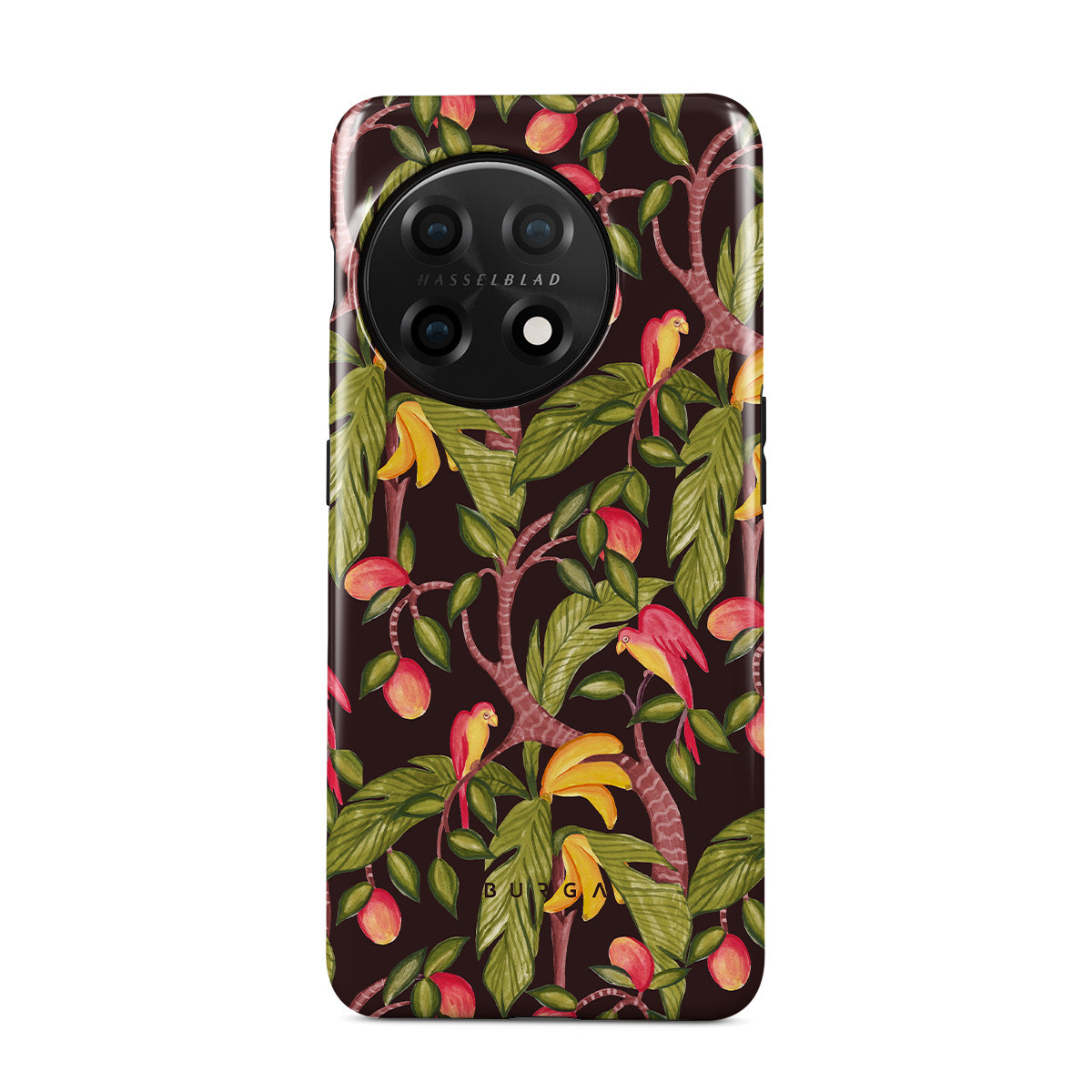 Kenmerken van dit design: mango's, donkere groene bladeren, jungle geïnspireerd patroon