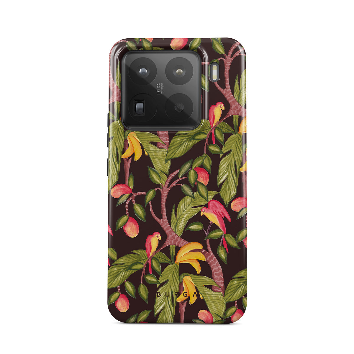 Kenmerken van dit design: mango's, donkere groene bladeren, jungle geïnspireerd patroon