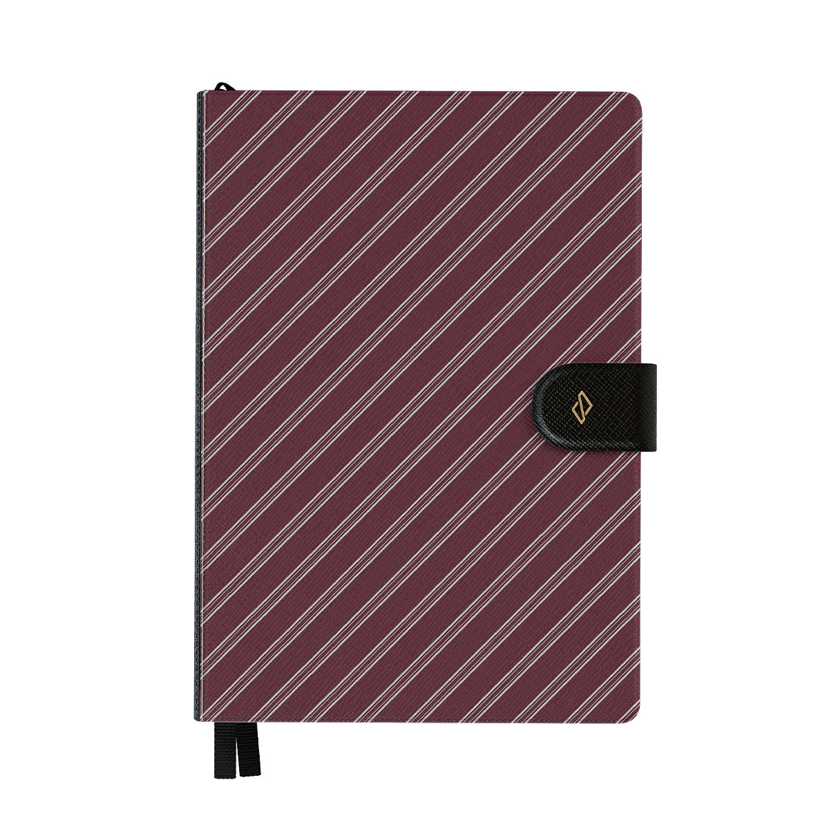 Uitgevoerd in strak veganistisch saffiano leer en vastgezet met een stijlvolle magnetische sluiting, is het stevig genoeg om koffievlekken en kleine ongelukjes te weerstaan.