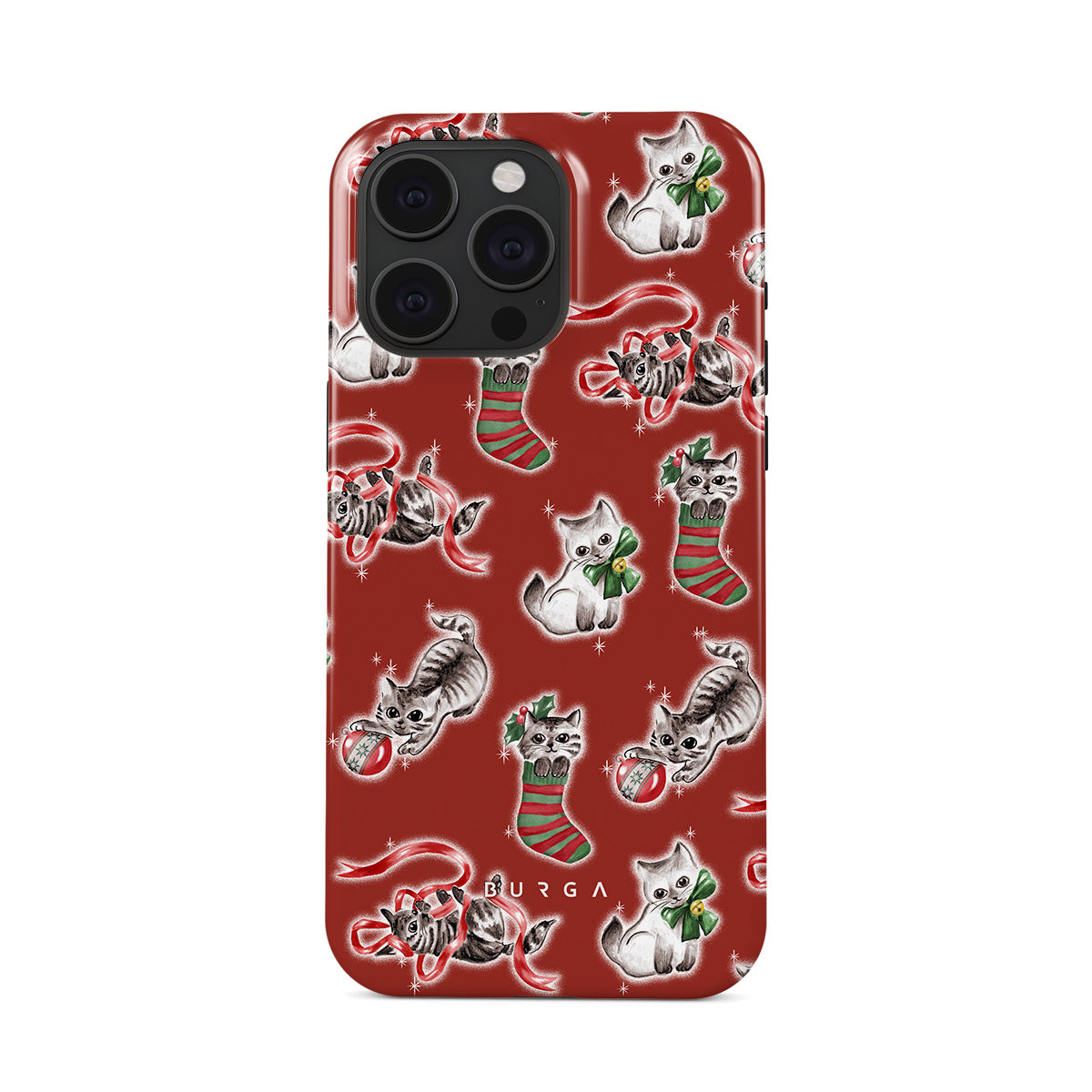 Kenmerken van dit design: katten, kerstkousen, kittens, rood en groen patroon, speelse katten, kerstversieringen