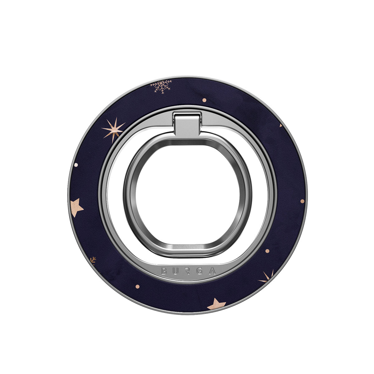 Deze magnetische ringhouder klikt vast met een bevredigende klik, dus geen lijm, geen gedoe. Gebruik ‘m als grip om met één hand te scrollen, als standaard voor handsfree series en films kijken, of als stijlvolle accessoire die perfect bij je BURGA-hoesje past.