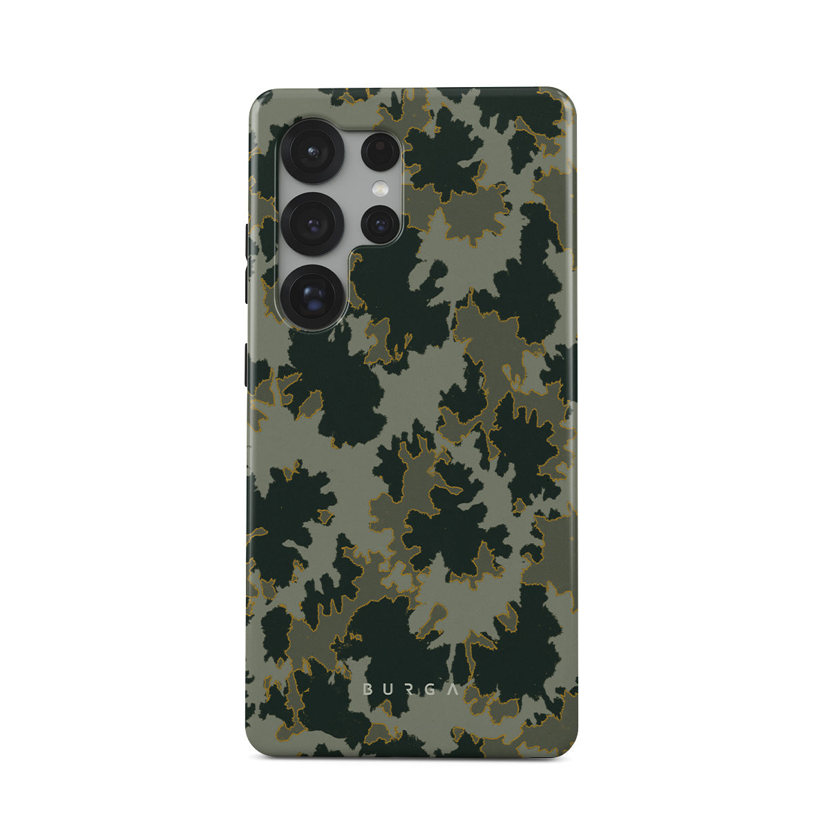 Kenmerken van dit design: groene camouflage, natuurlijk patroon, militair geïnspireerd patroon