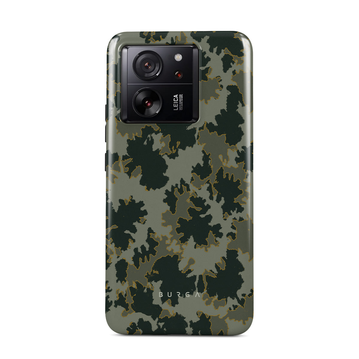 Kenmerken van dit design: groene camouflage, natuurlijk patroon, militair geïnspireerd patroon