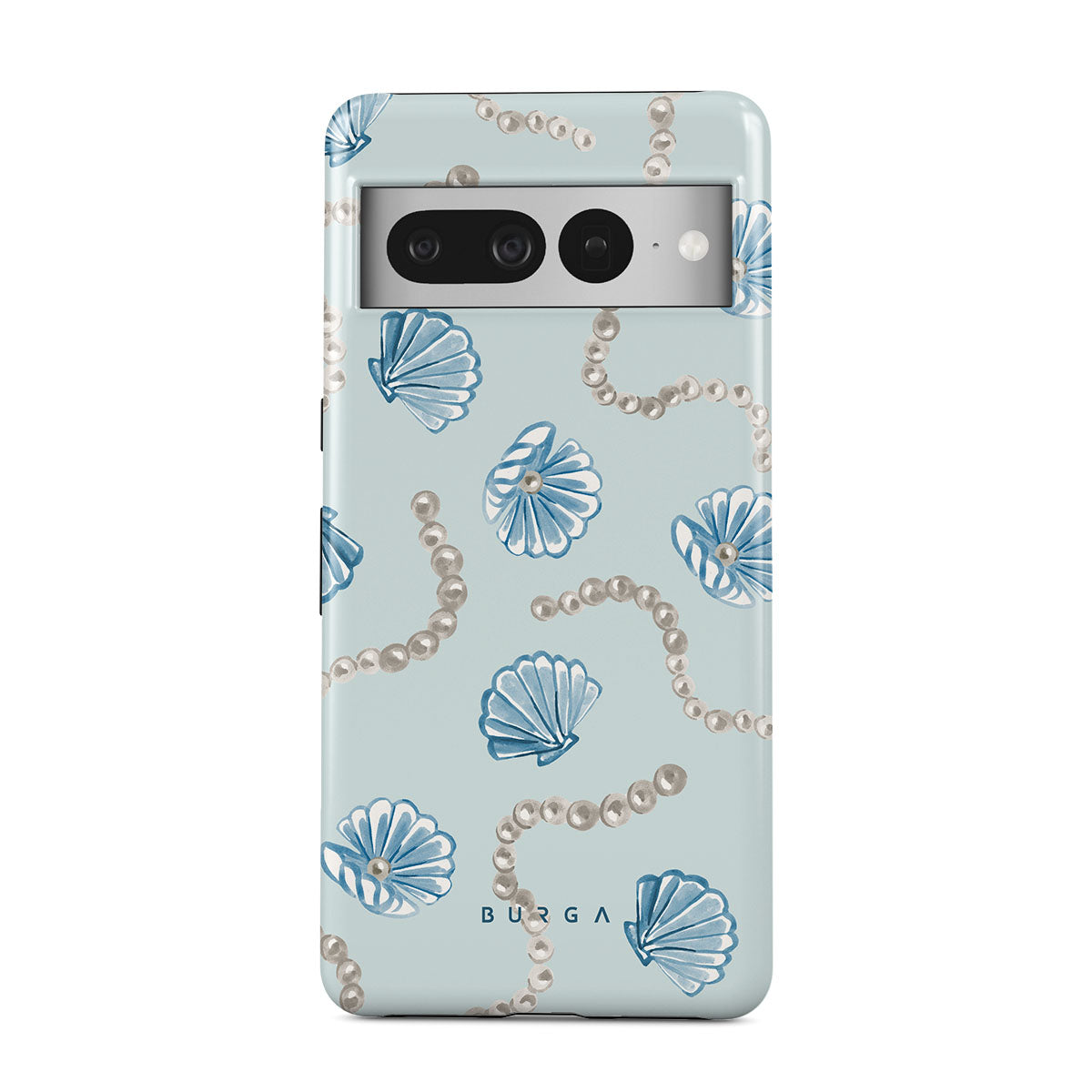 Kenmerken van dit design: parels, schelpen, lichtblauwe achtergrond, oceaan elementen.