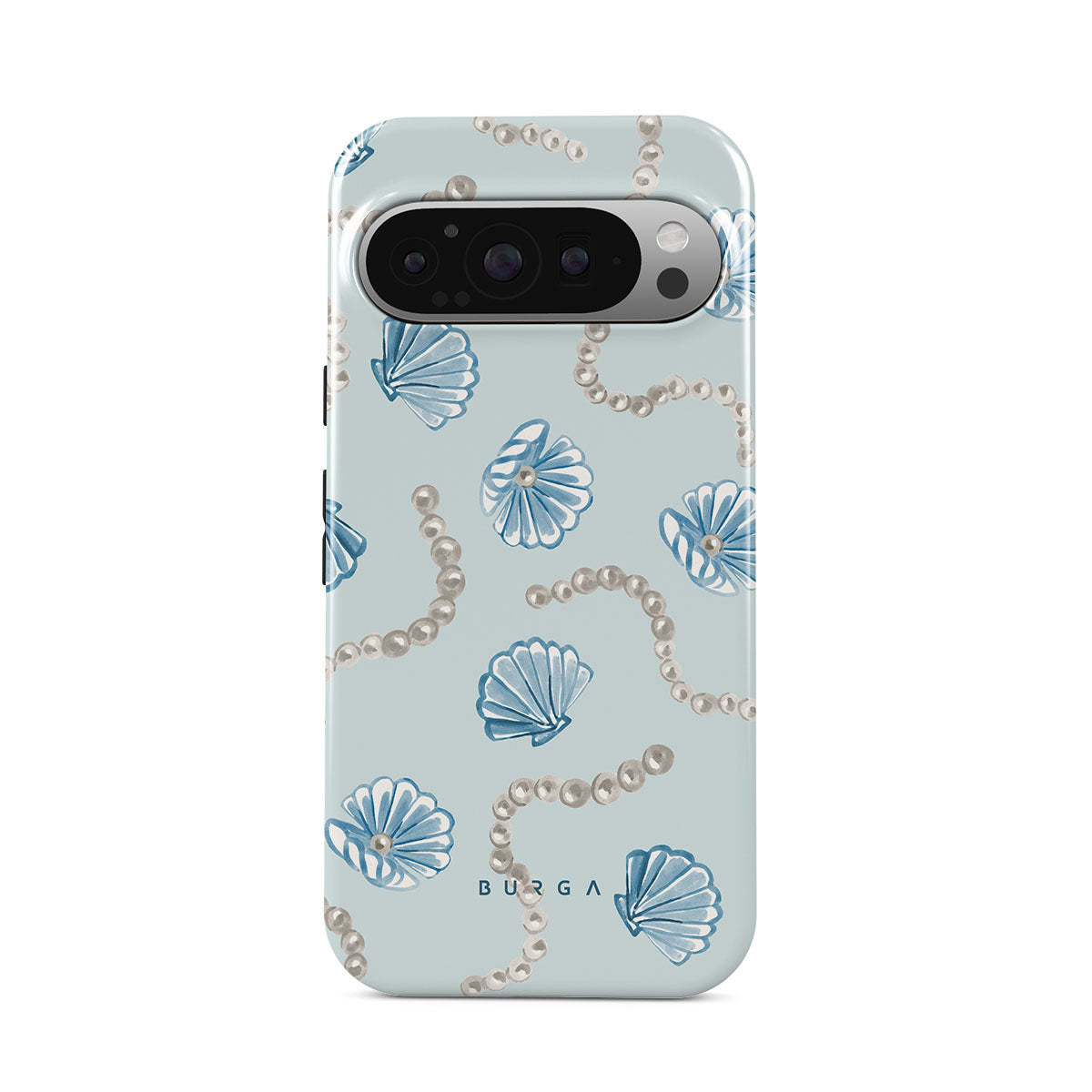 Kenmerken van dit design: parels, schelpen, lichtblauwe achtergrond, oceaan elementen.