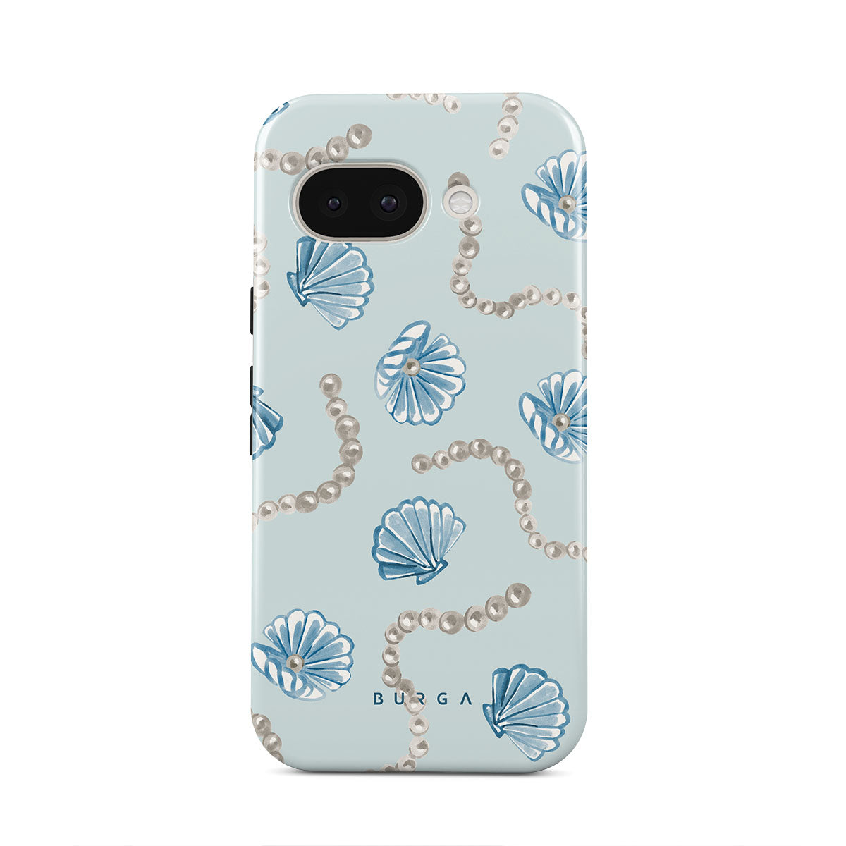 Kenmerken van dit design: parels, schelpen, lichtblauwe achtergrond, oceaan elementen.